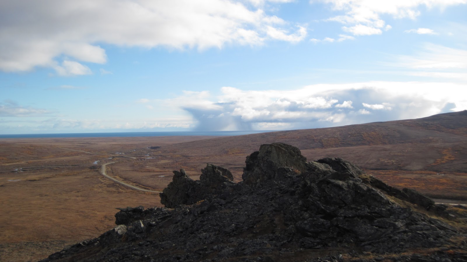Those were the days of fat ice. Before the giant came with his ANAUTAQ and chopped it all away. The Earth here has been battered; I'll bet the Earth was happy to find its new home in Shishamareff and Teller. All the preceding pictures were taken from the same spot on the Council Road; you can see the cliff growing bigger.